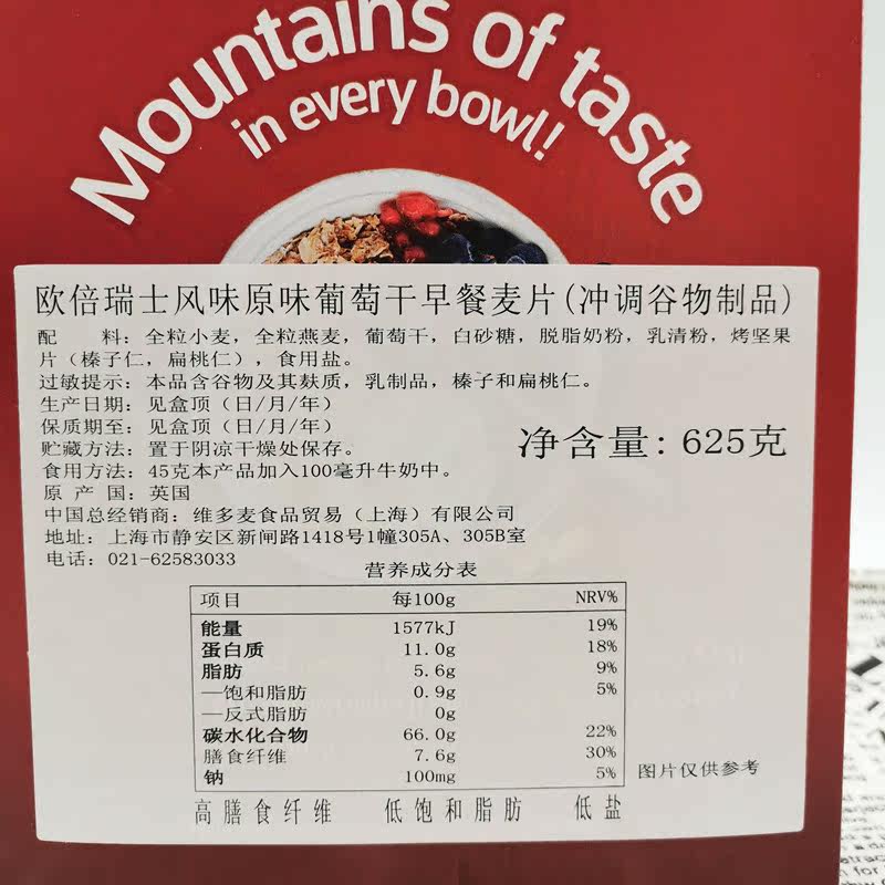 Obe Swiss-style original raisin breakfast cereal 550g British imported Alpen ready-to-eat no-cook preparation