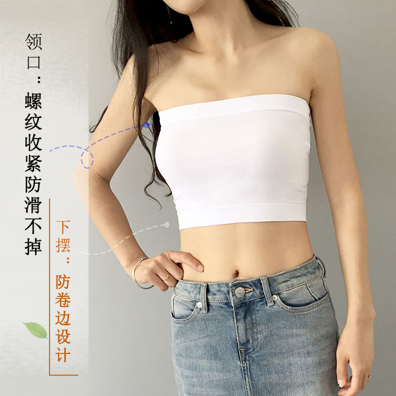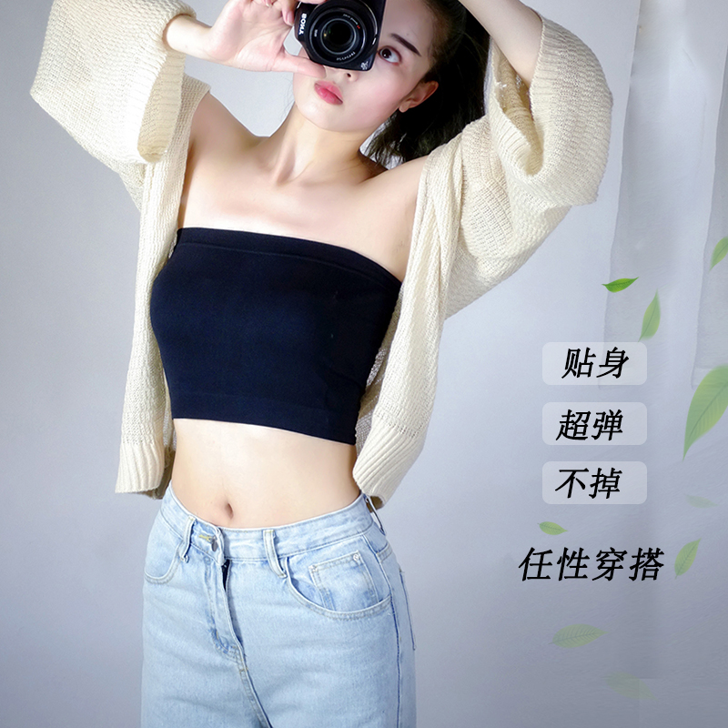Black chest-wrapped bandeau underwear with a female vest inside, large chest, small summer thin top, strapless outer wear, anti-light
