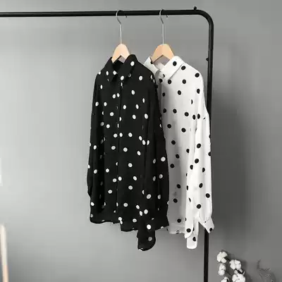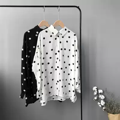 Nine buttons large size women's clothing 2021 summer new sunscreen clothes lazy simple polka dot plus fat plus thin shirt 866