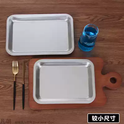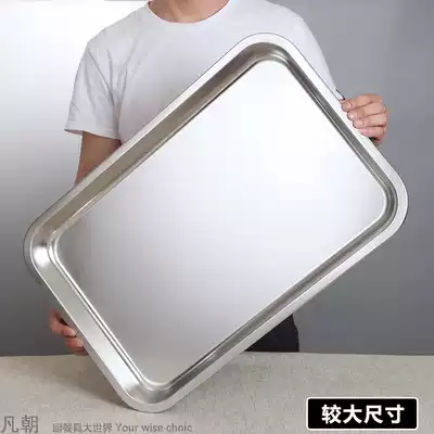 Special thick 304 food grade stainless steel tray household rectangular dish dumpling barbecue tray flat-bottomed commercial steamed plate