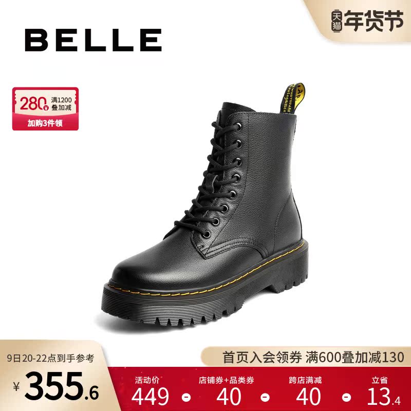 Belle thick-soled Martin boots female winter New 6 8 hole ins tide retro leather short boots velvet 68386DD0