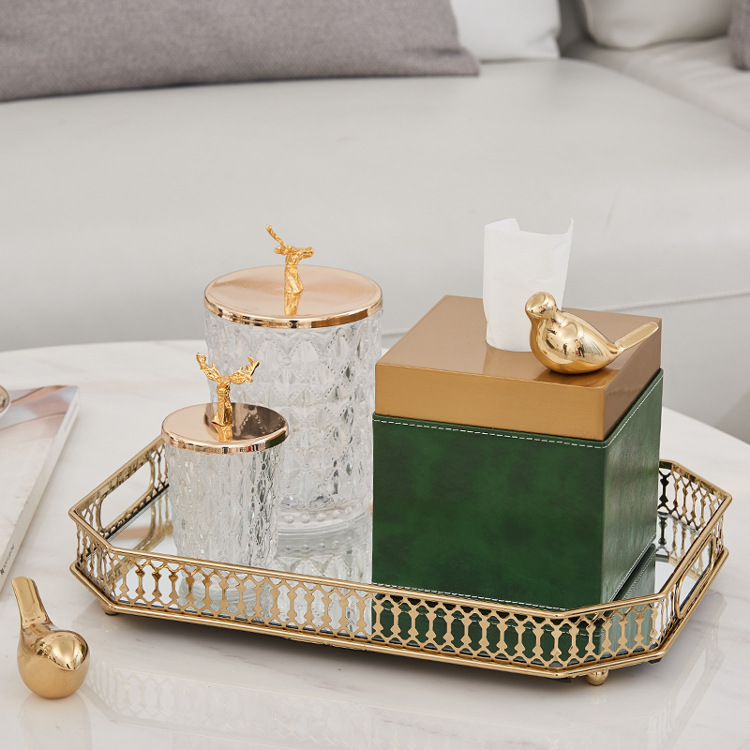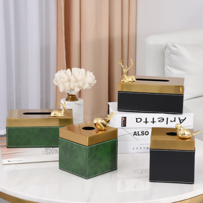 Luxurious Leather Stainless Steel Tissue Box Swing for tea table napkin Box Home Living room sanitary paper Box table Extraction toilet paper