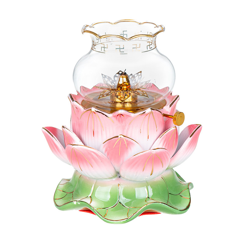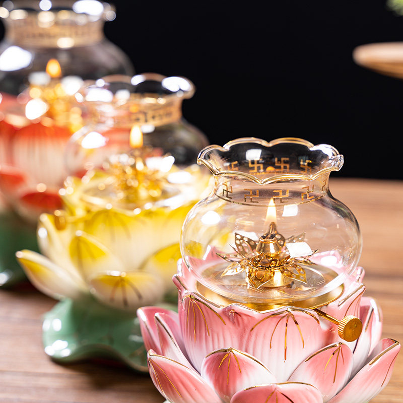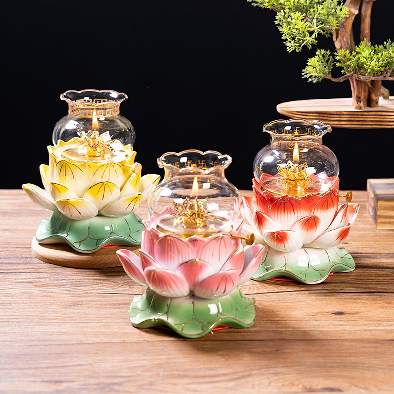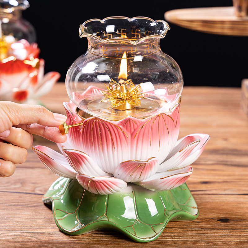 Lotus Crisp Oil Lamp Handcrafted Gold Lotus Lamp Ceramic Adjustable Windproof Oil Lamp Long lamp Buddhist lamp Home for the lamp