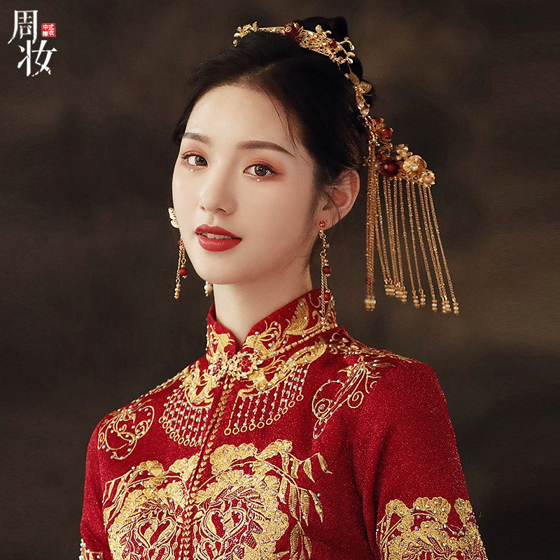 Chinese-style bride Xiuhe clothing headdress atmospheric ancient wedding wedding hair accessories step shaking tassel Xiuhe phoenix crown showing small face