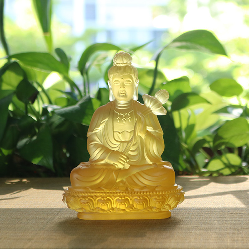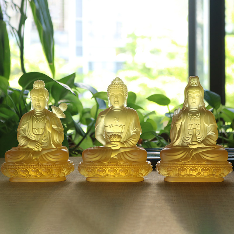 Western Three Sacred Glass Ornament Buddha Amitabha Buddha Statue Guanyin Buddha Statue Great Trend to the Home Offerings to the Buddhist Hall Offerings