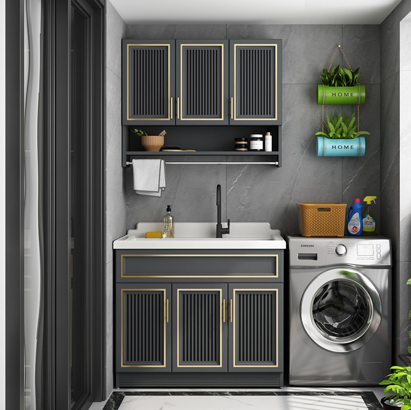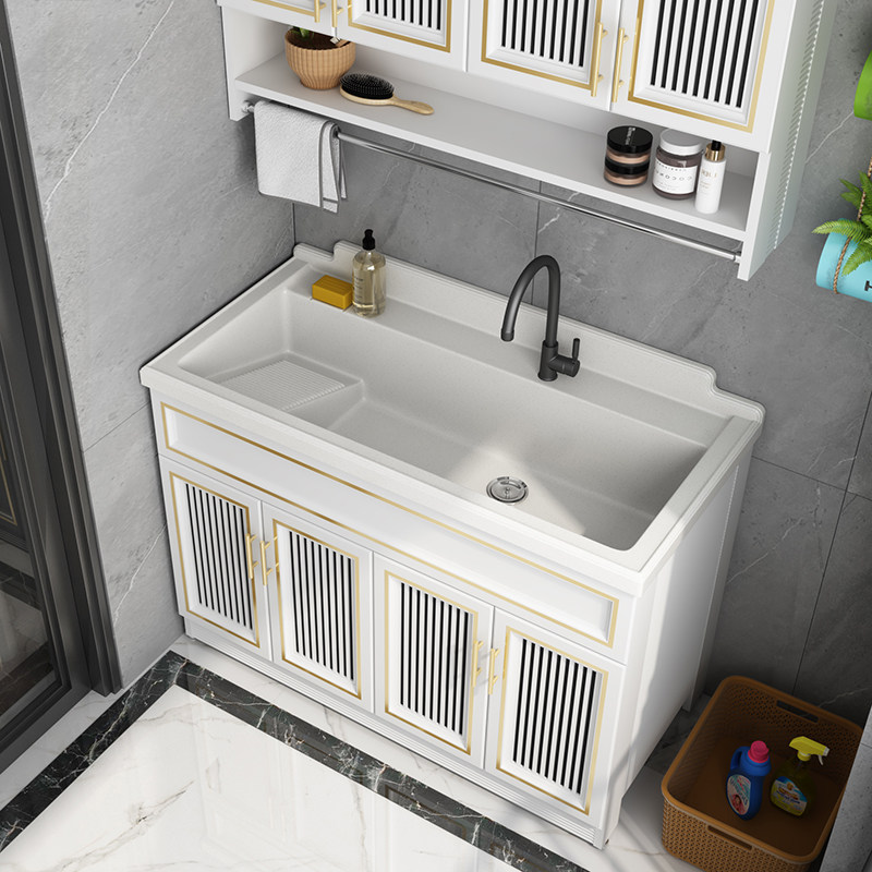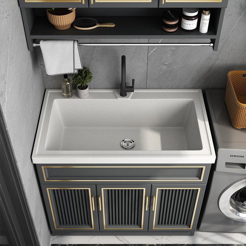 Balcony space aluminum laundry cabinet Laundry basin Waterproof Quartz stone laundry tank Floor-to-ceiling bathroom cabinet One-piece large pool cabinet