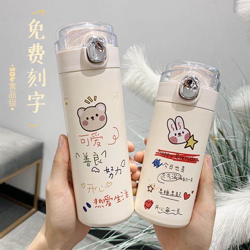 Cook small Bear 320ml cup with rope (style random hair) black and white-back afterlife 350ml Christmas animal 450ml3D relief cup with rope (style random)