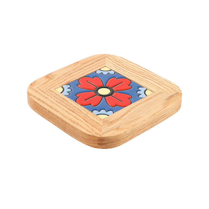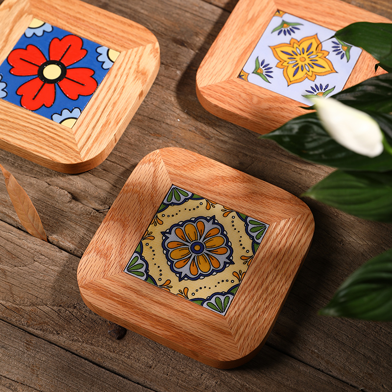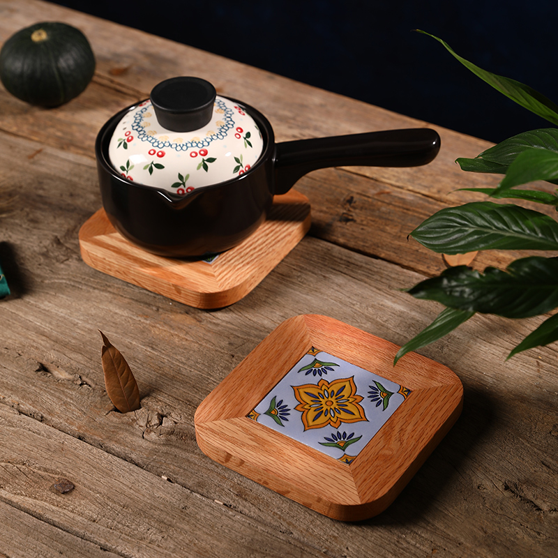Solid wood retro tile thermal insulation casserole pad home creative kitchen placemat high temperature anti-scalding table mat Japanese coaster