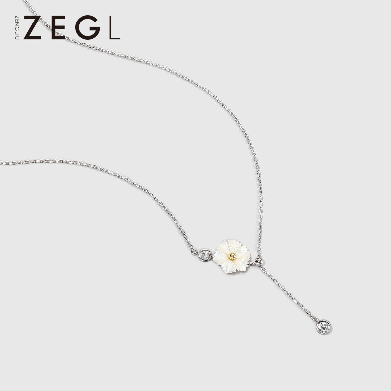 ZENGLIU925 Sterling Silver Daisy Necklace Female Mori Flower Pendant Simple Versatile Clavicle Chain Birthday Gift