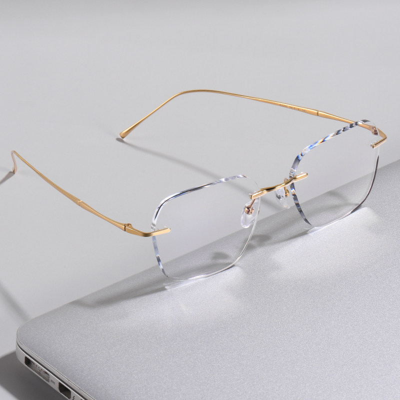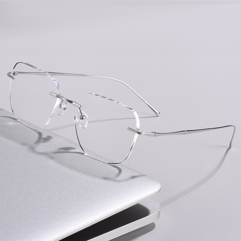 Men with rimless pure titanium myopia glasses Tide has matchable degree glasses frame large face frame thin finished eyes