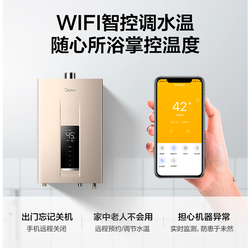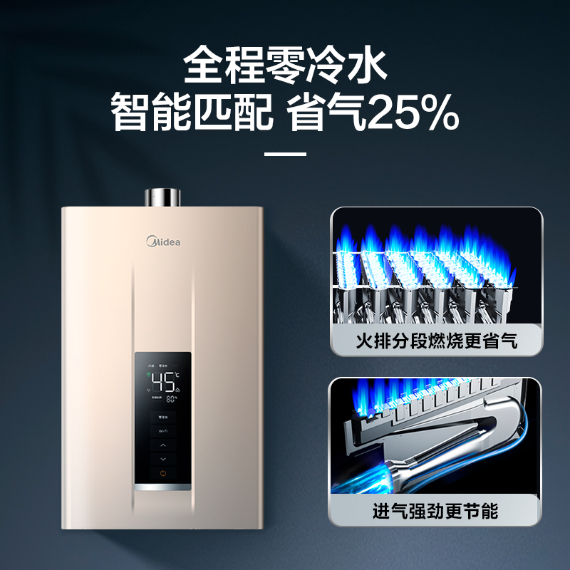 Midea zero cold water gas water heater household natural gas strong exhaust constant temperature 13 16 liters intelligent bath NT1