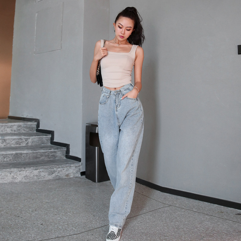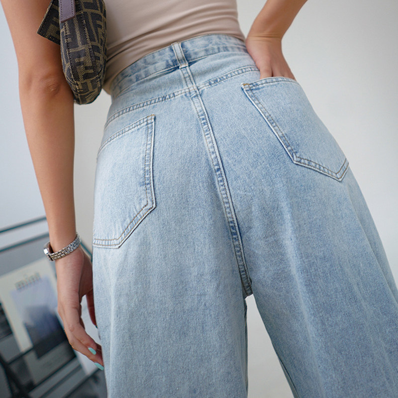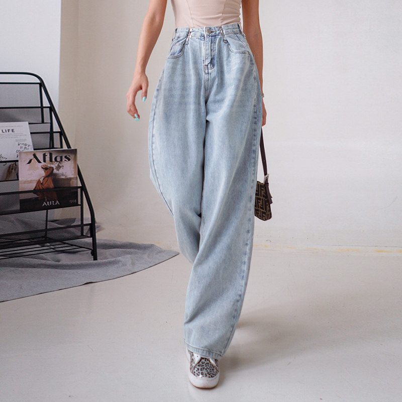MOONA HYUNA wide-leg pants high-waisted jeans women's spring and autumn new thin loose drape mopping light-colored pants