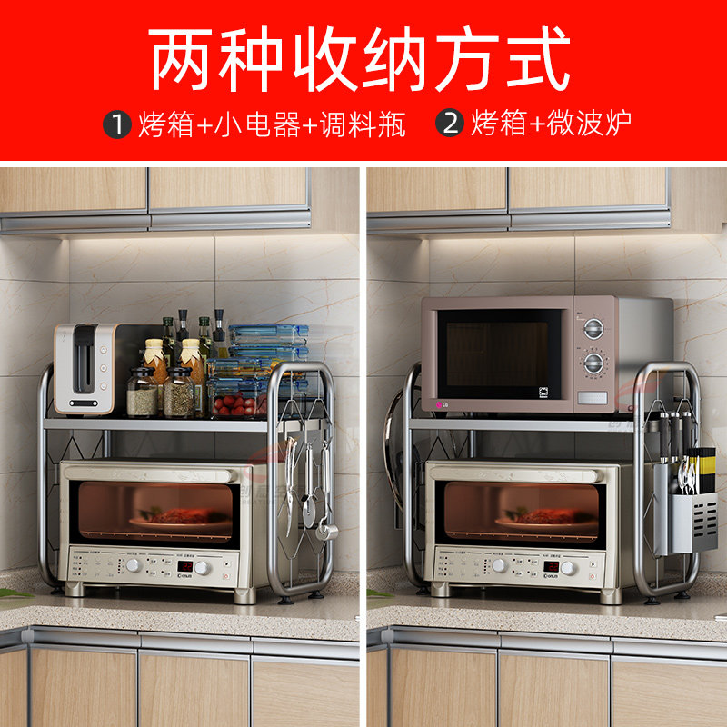304 stainless steel kitchen rack household double-layer tabletop countertop rice cooker microwave oven rack oven storage