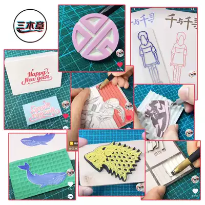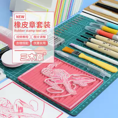 Three wood chapter rubber chapter set Hand-carved rubber material package Student DIY printmaking novice package zero foundation to send tutorial material Three-layer removable rubber brick engraving rubber brick