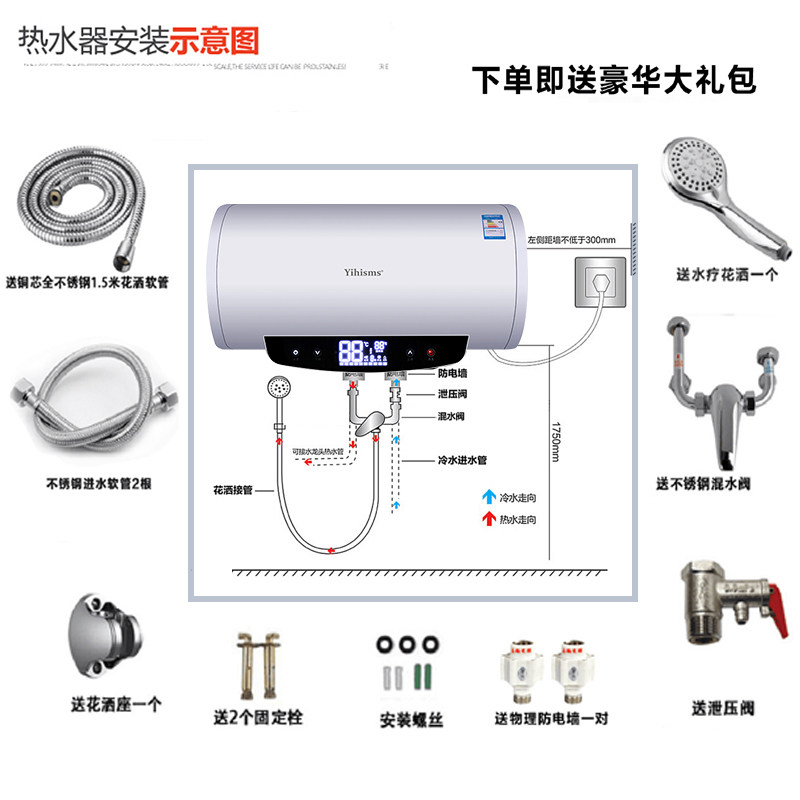Smith water heater electric household water storage type 40 liters bath 50 60 80 liters Powder room quick hot shower Small