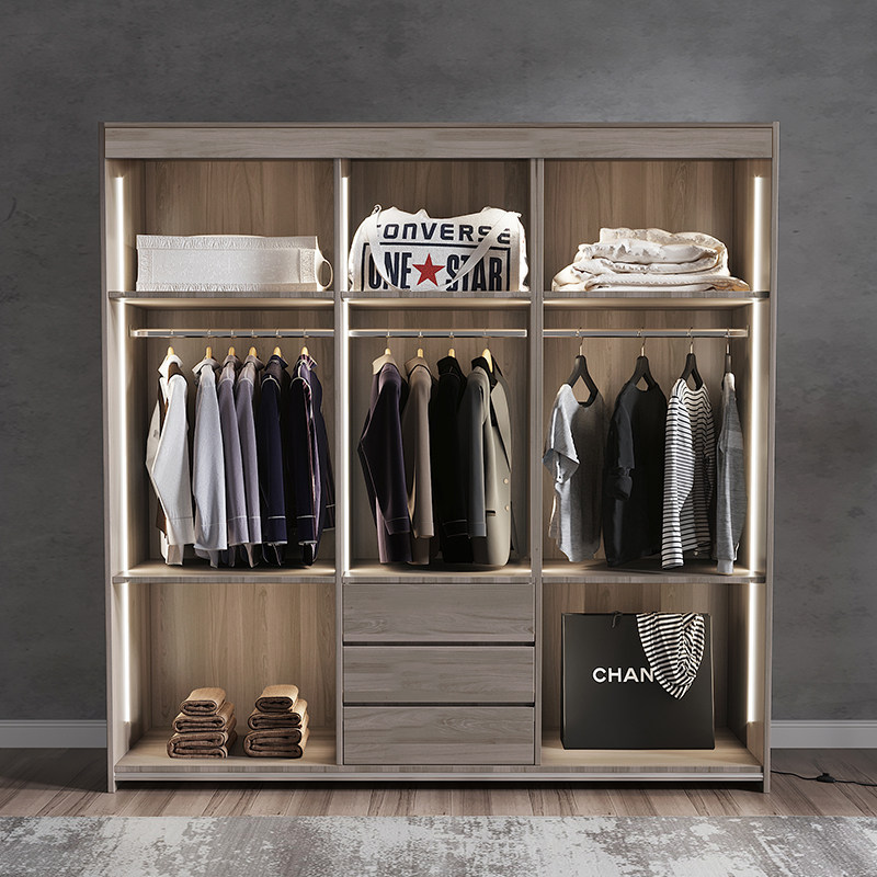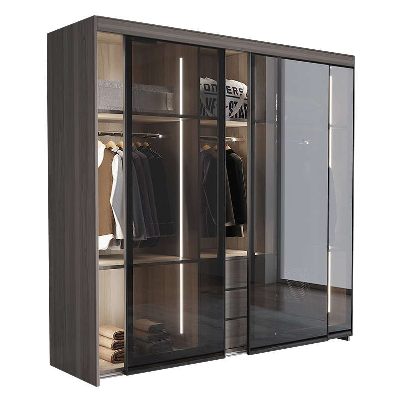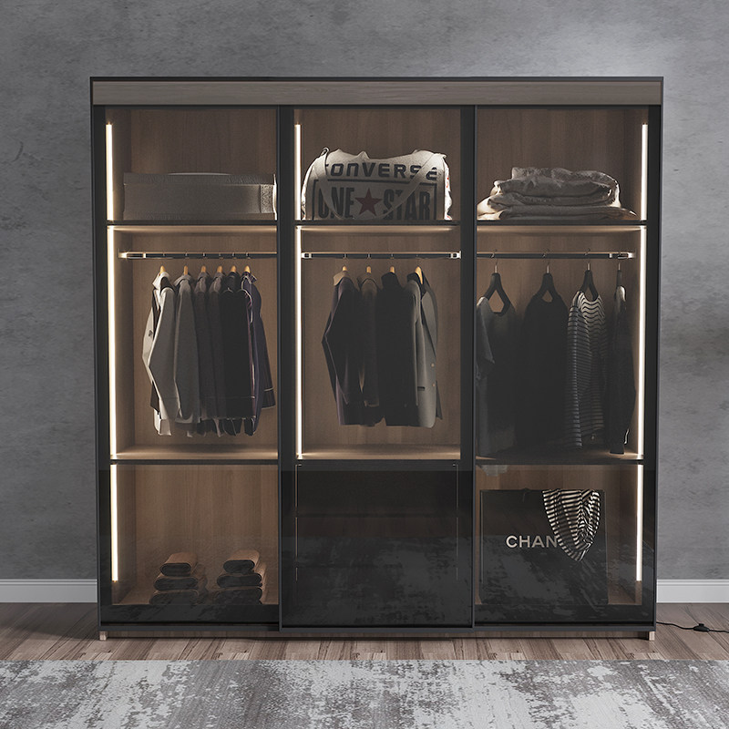 Nordic Modern Minimalist Wardrobe Bedroom Assembly Ramen Tempered Glass Door Wardrobe Moving Door Storage Large Closet