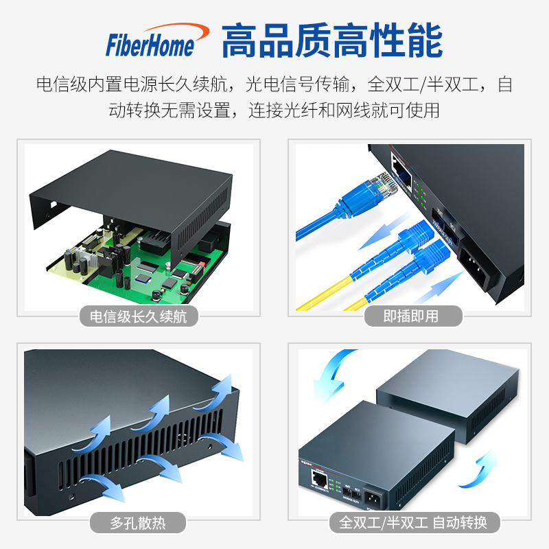 FiberHome (FiberHome) Telecom-grade Gigabit single-mode single-fiber optical transceiver 20km 40 60km 100 megabit dual fiber built-in power photoelectric converter 1 light 1 light