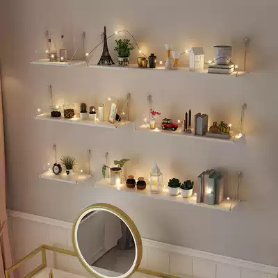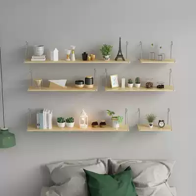 Solid Wood New Lower Hanging non-installation single-word partition non-hole room wall decoration wall wall hanging shelf clapboard bookshelf