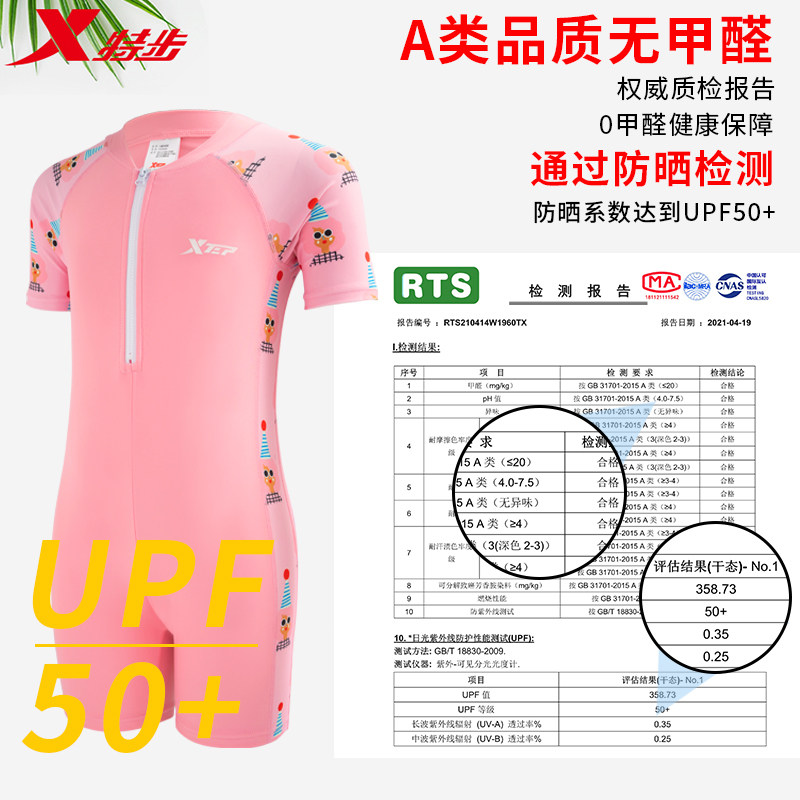 XTEP Children's Swimsuit Girls Summer Small Medium Large Virgin girl one-piece swimsuit Baby 2021 new sunscreen swimsuit