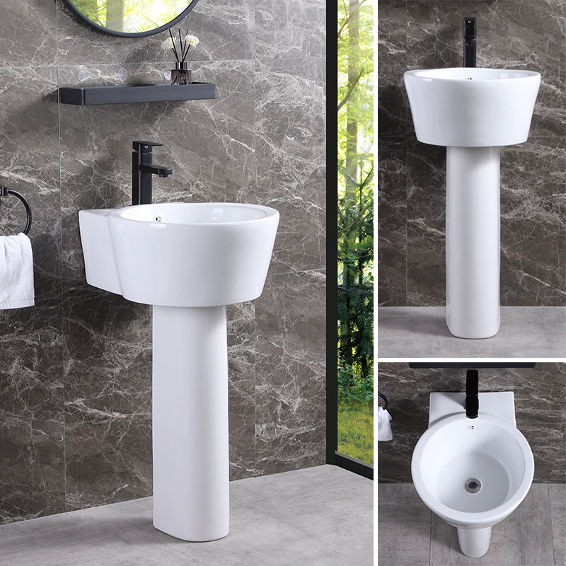 Ceramic Column Basin Wash Basin Small Family Type Makeup Room Balcony Washbasin Floor Type Large Capacity Home Laundry Basin