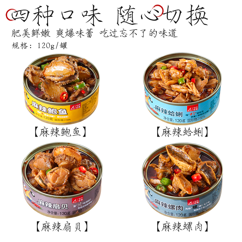 Golden Peng Sesame Spicy Small Seafood Ready-to-eat Clams Ablux Balsamu Scallop Scallop Spiced Spiced Snack Canned Food 4 Jar Combinations