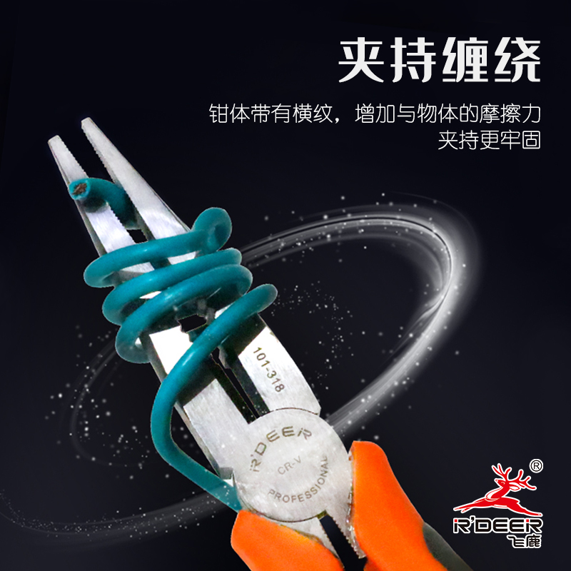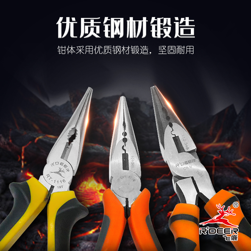 Flying Deer Tool Multifunction Sharp Mouth Pliers Chrome Vanadium Steel Spirile Pliers Multipurpose Sharp Mouth Pliers Quadu Hair Black Tip Pliers