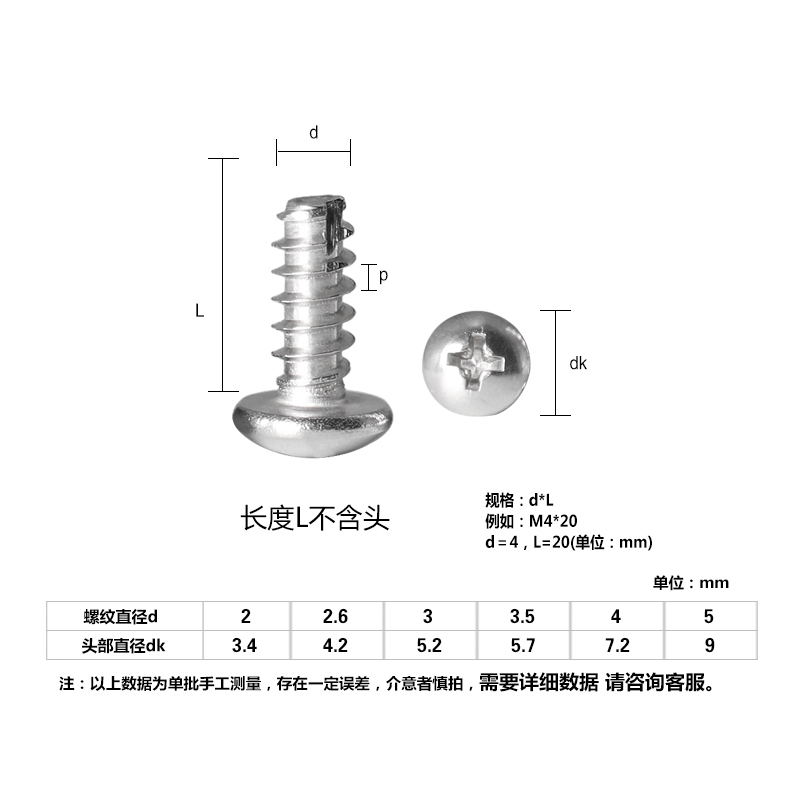 Nickel-plated cross round head self-tapping M3-M4