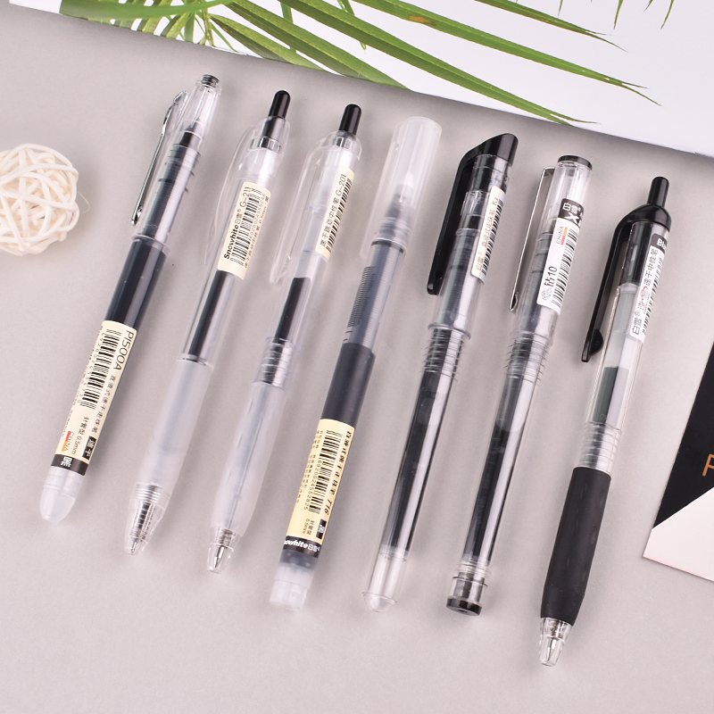 Baixue straight liquid water-based ballpoint pen quick-drying school master brush question pen students use green pen water-based pen black purple pen set neutral pen ins cold wind simple combination Japanese literature and art press type