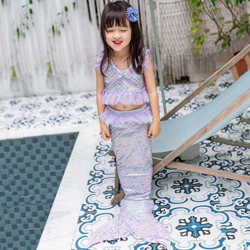 Girls Swimwear Baby Summer Mermaid Tail Skirt Children Princess Girl Swimsuit Pants Split Three-piece Set