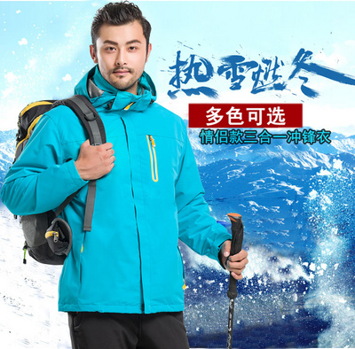 Winter outdoor tide brand stormtrooper men's and women's three-in-one velvet couple two-piece waterproof thickened warm jacket