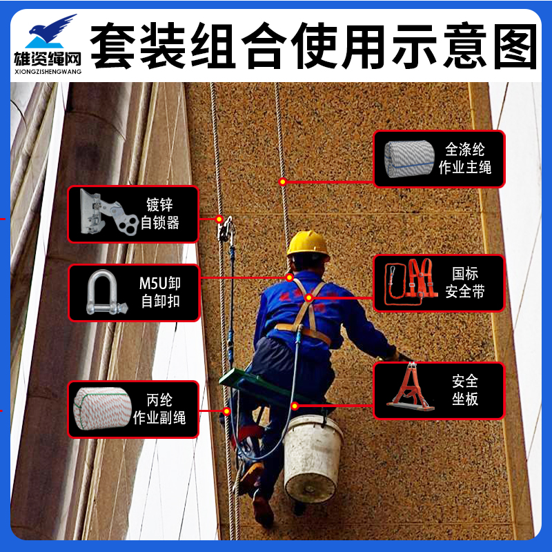 Outdoor Safety Rope High Altitude Exterior Wall Operation Special Polyester Fiber Stringer Spider Man Sitting Plate Nylon Rope Suit Abrasion Resistant