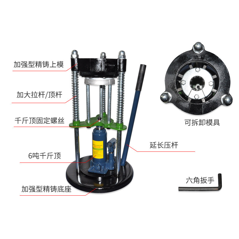 Pressure pipe machine table (send extension rod hexagonal wrench) pressure pipe die jack 4 ton jack 5 ton 6 ton universal triangular plate external die long screw rod short screw rod electric pressure pipe machine 900 W electric pressure pipe machine