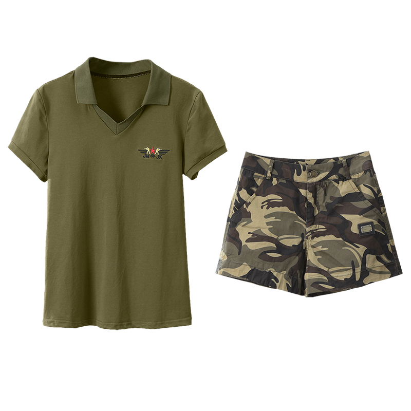 Camouflage short-sleeved suit woman 2020 Summer new Korean version Fashion big size Pants Hot Pants Two Sets Tide