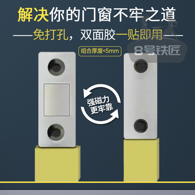 Ultra-thin cabinet door suction-free punch-free sliding door suction strong magnet sticker drawer wardrobe lock suction device magnetic touch magnetic suction