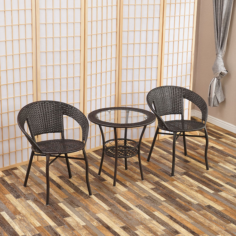 Rattan chair three-piece set balcony small table chair small coffee table modern simple outdoor teng woven chair courtyard leisure imitation rattan tea table