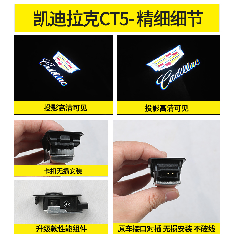 Door welcome light (color) 2 pieces of car door welcome light (color) 4 pieces of CT5 XT4 only need to take 2 pieces of rearview mirror welcome light (music note color label) 2 pieces to the store for installation