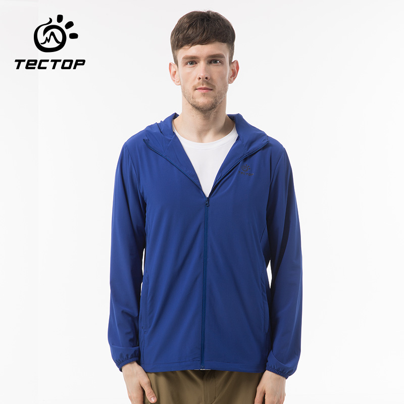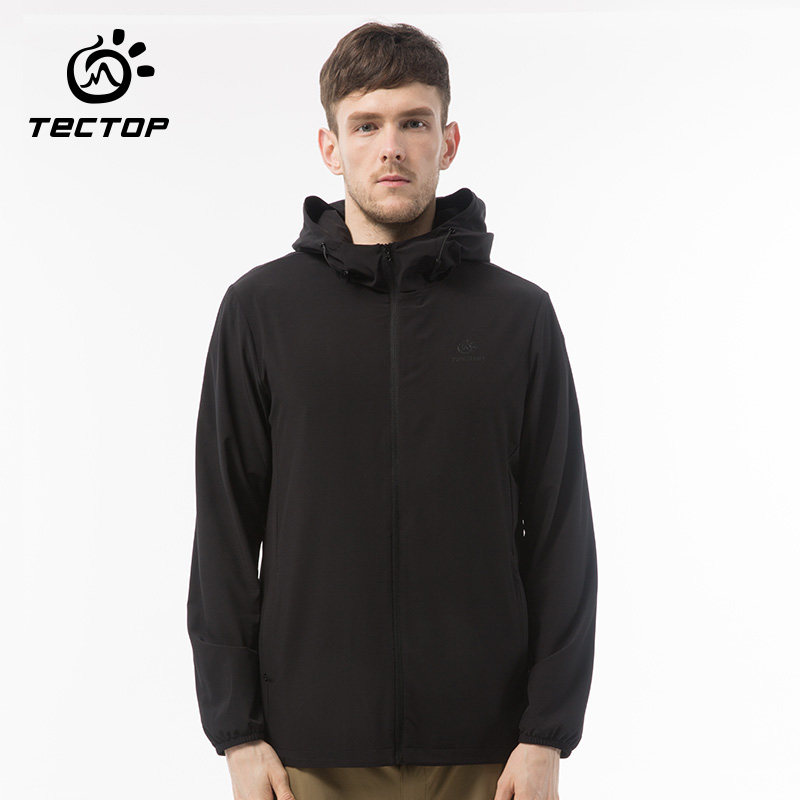 TECTOP explores outdoor male elastic coat breathable speed dry hood jacket thin windwear