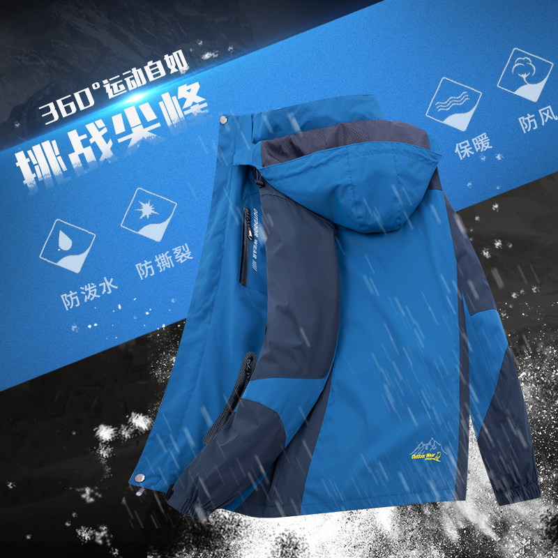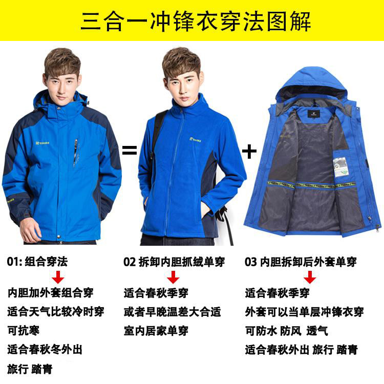 Tide brand storm jacket men's and women's three-in-one two-piece set of winter plus velvet thickened waterproof and windproof custom outdoor hiking suit