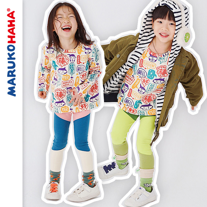 MARUKO HAHA children Foreign style print T-shirt spring autumn girls long sleeve top fashion boy base shirt tide