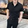 Solid color short-sleeved shirt men's 2020 summer Korean version handsome youth slim and versatile thin shirt men free ironing tide