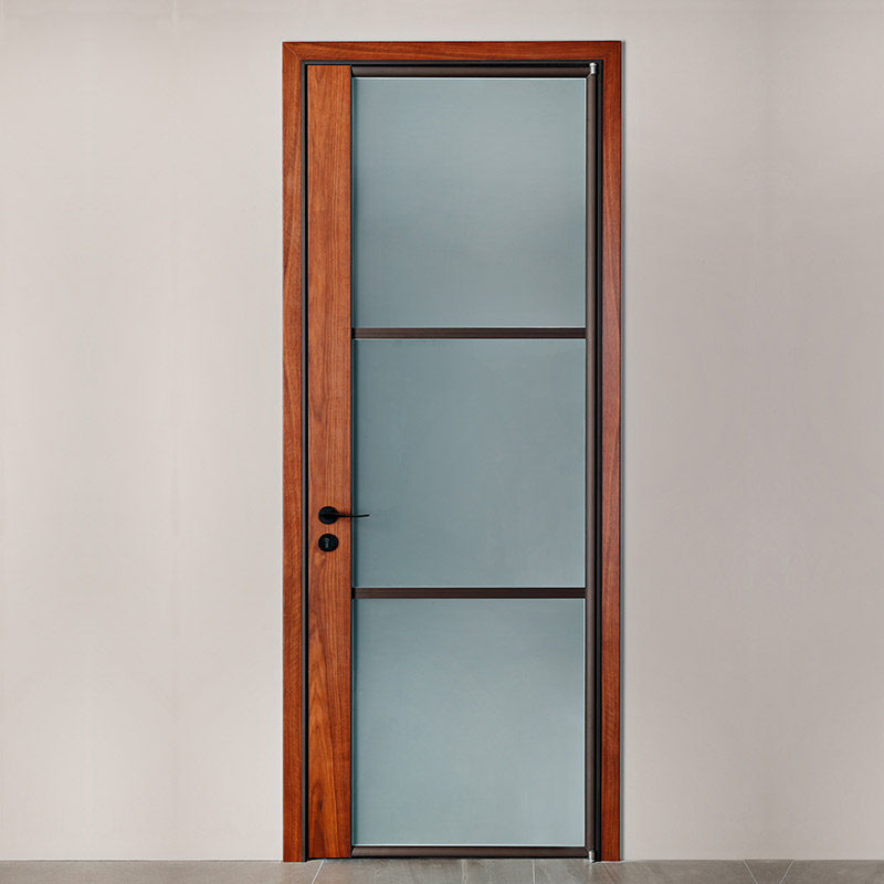 Boloni Full house room door custom-made titanium aluminum alloy solid wood glass flat open door set to make a gold legend