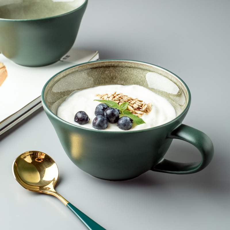 Creative Ice Fracted Oats Bowl Cup Mass Breakfast Cup Nordic Ceramic Mark Cup Household Large Caliber Cup