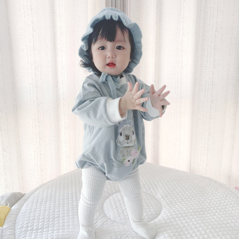 ins22 spring and autumn new Korean baby cute bunny printed baby jumpsuit baby fart sweater romper