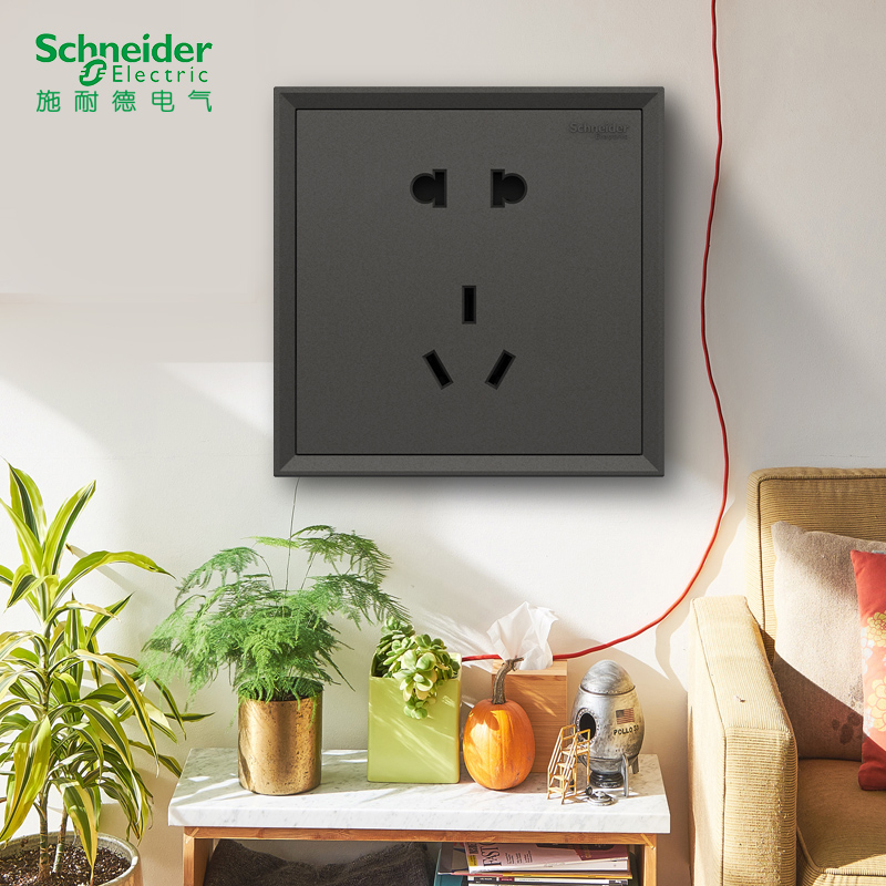 Schneider switch socket panel Hao - long deep ash household 86 type open USB 5 - hole dark socket gray