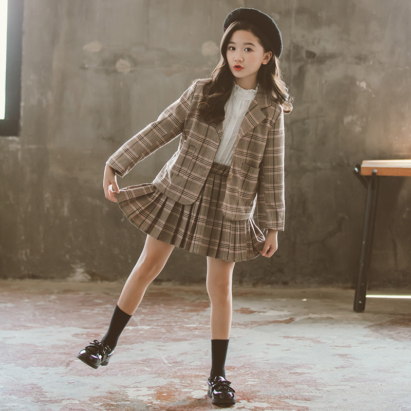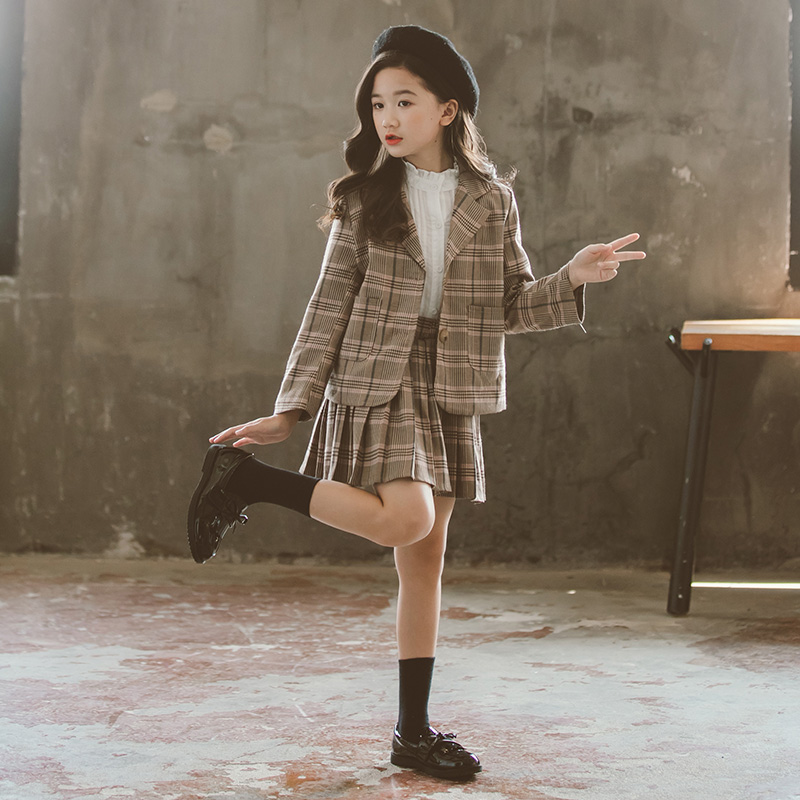 Girl Autumn Clothing Suit Suit Skirt Dress Foreign Air 2023 New Korean Version Tennis Red Fashion Suit Jacket Girl two sets-Taobao