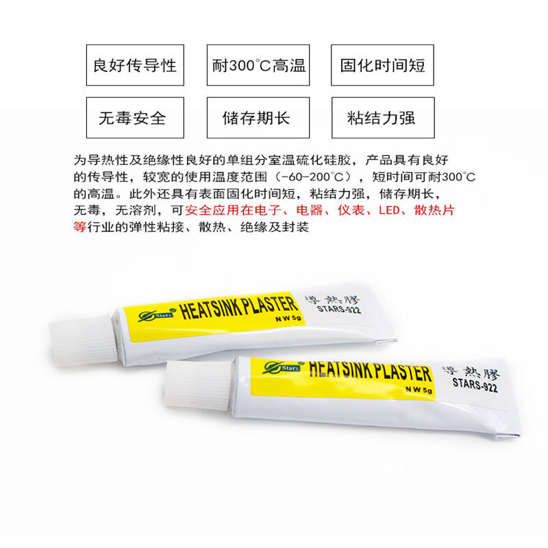 Thermal adhesive, high temperature curing, strong adhesive silica gel, performance, thermal adhesive, 5 grams, hot conductive adhesive, 5 grams, STARS-922