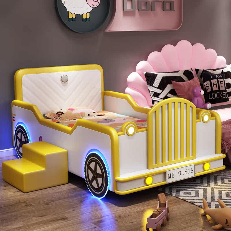 Children's bed boy Simple modern car multi-functional small apartment Creative solid wood cartoon suite Children's bed spot