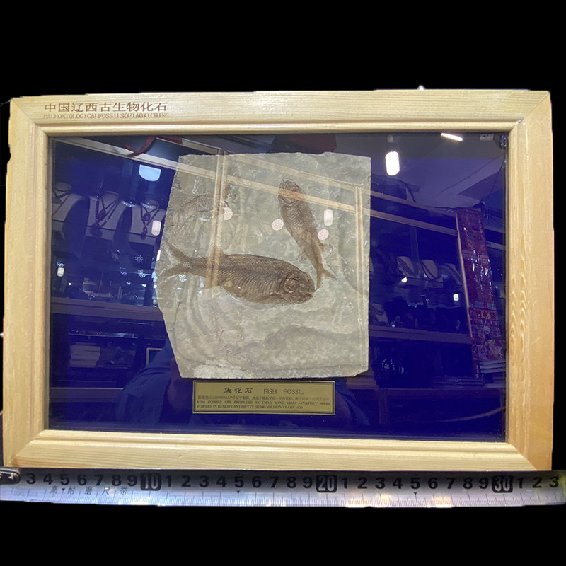Western Liaoning paleontological wolf-fin fish fossil single fish group fish exquisite solid wood framed boutique gift box