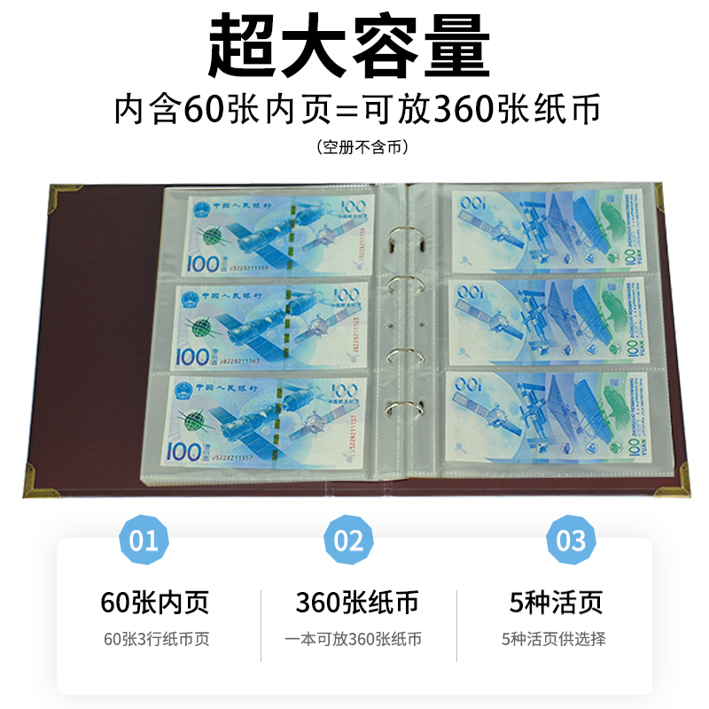 360 banknotes collection book coin protection book large-capacity RMB commemorative banknote collection collection book protection bag