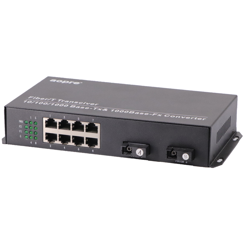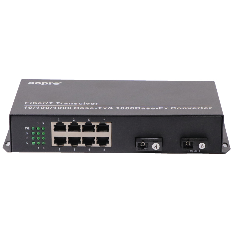 aopre aubergine fiber transceiver full one thousand trillion 2 light 8 electric ring network switch plug and play ring network redundant single-mode single fiber double fiber optic transceiver